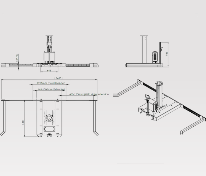 | PTB-1003 | EasyPalletizer Basic with fixed pedestal 1200mm | H: 835 mm, W: 870, L: 1350, Wt: 200 kg, For 2 pallets with with two adjustable Pallet Grid, Fixed pedestal 1200 mm |