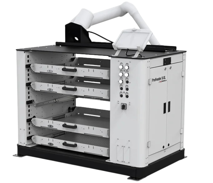 ProFeeder X-XL is a high-capacity robotic drawer system engineered to optimize CNC automation in demanding environments. Multiple spacious trays enable continuous tending, minimize downtime, and boost overall efficiency.